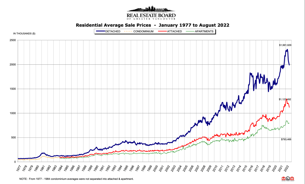 Historical Housing Prices – Real Estate Board of Vancouver’s August 2022 Report